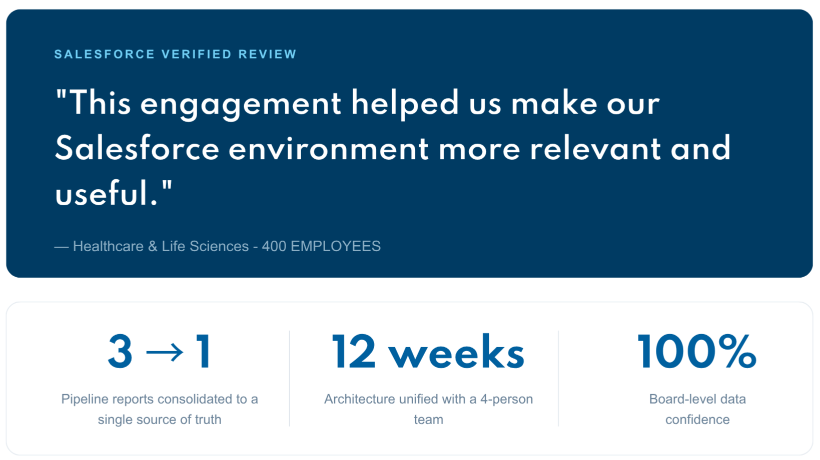 Most scaling companies and small enterprises get about 60% of the way to their Salesforce vision. The implementation went fine. But reports take too long, automations break, and your sales team stopped trusting the pipeline figures.